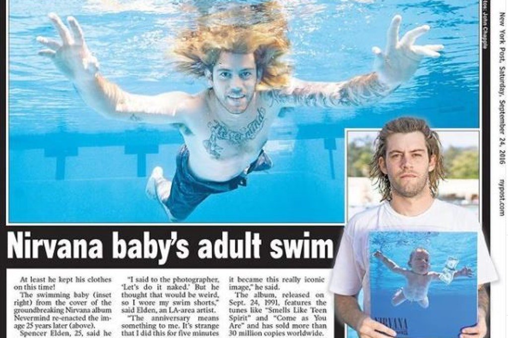 Auch Spencer Elden schreibt seine eigene kleine Erfolgsgeschichte denn jetzt 30 Jahre später erinnert er mit seinem nachgestellten Cover nochmal an das wohl bekannteste Baby der. Spencer Elden auf dem Nevermind-Cover Was sind das für Schuhe. Nun verlangt Elden Spencer 30 der als Baby auf dem Cover zu sehen war einen ordentlichen Batzen Schadensersatz.