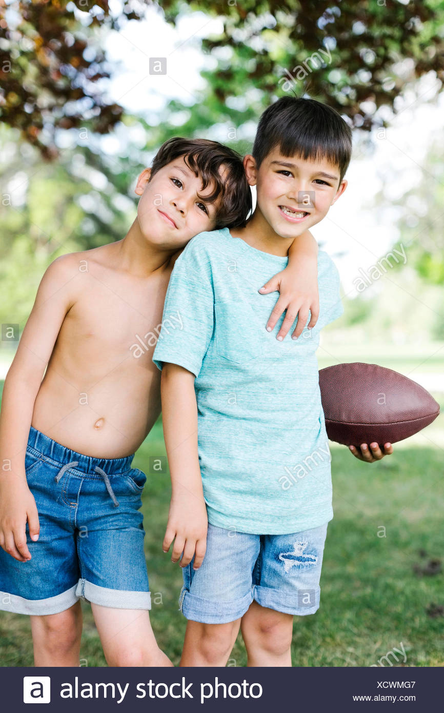 Young Boys 6 7 8 9 With American Football Ball Stock Photo Alamy