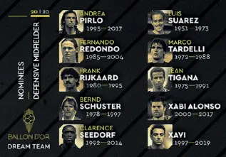 Bola de Ouro Dream Team. The list has 20 competitors among the defensive midfielders and another 20 for offensive. O Ballon dOr Dream Team foi uma premiação desportiva criada pela revista francesa France Football para eleger a melhor equipe de futebol de todos os tempos com jogadores a partir da década de 1950123 Os 11 prêmios foram entregues em 14 de dezembro de 202045 O Dream Team da Bola de Ouro é formado por.